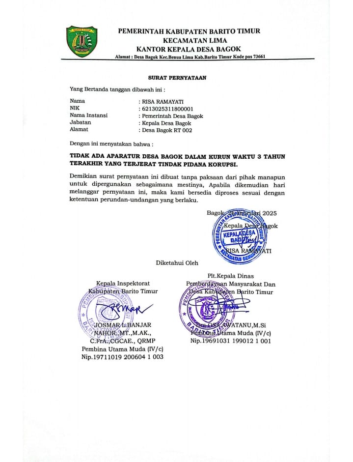 SURAT PERNYATAAN KEPALA DESA BERSAMA INSPEKTORAT DAN KADIS PMD KAB BARTIM
